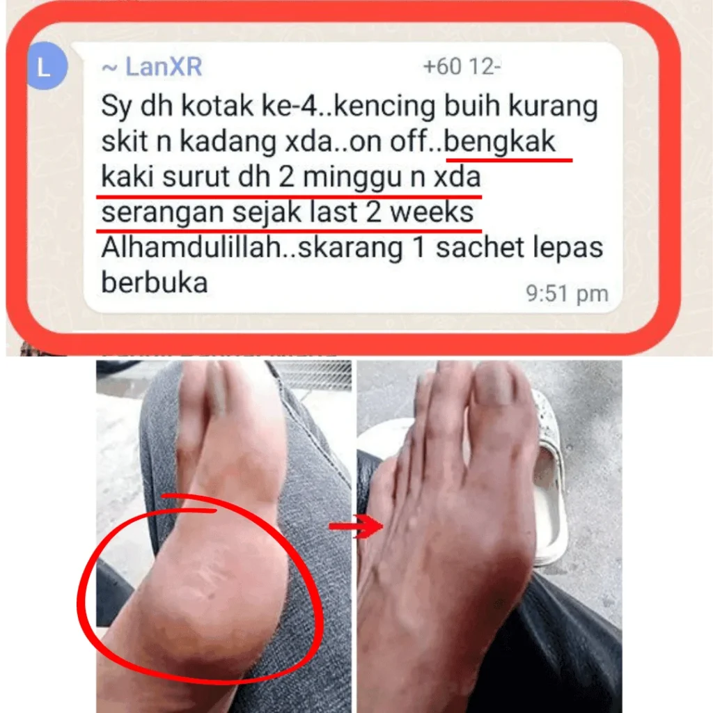 Kami beri jaminan , dalam masa 7 Hari anda akan dapat rasa perubahan penurunan bacaan Asid Urik . ( Dengan syarat anda perlu pantang makan untuk mengelakkan gangguan proses rawatan )