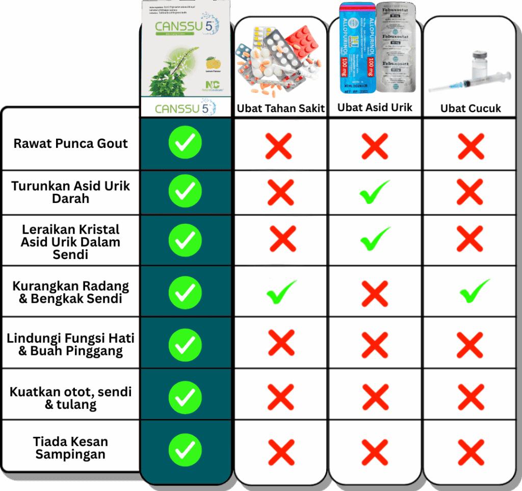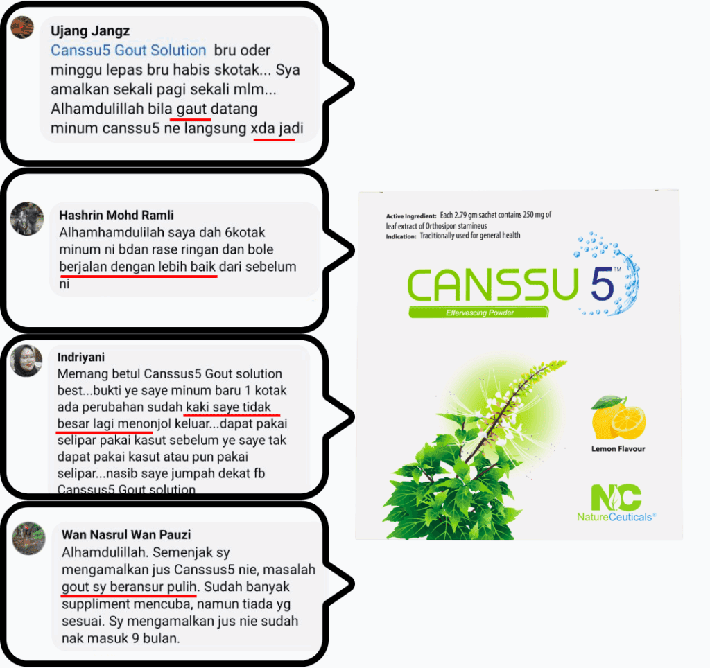 Canssu5 terbukti dapat merawat gout dari akar punca, bukan sekadar melegakan sakit.